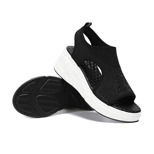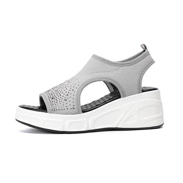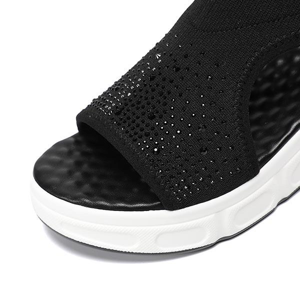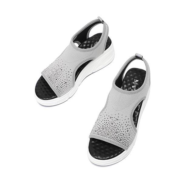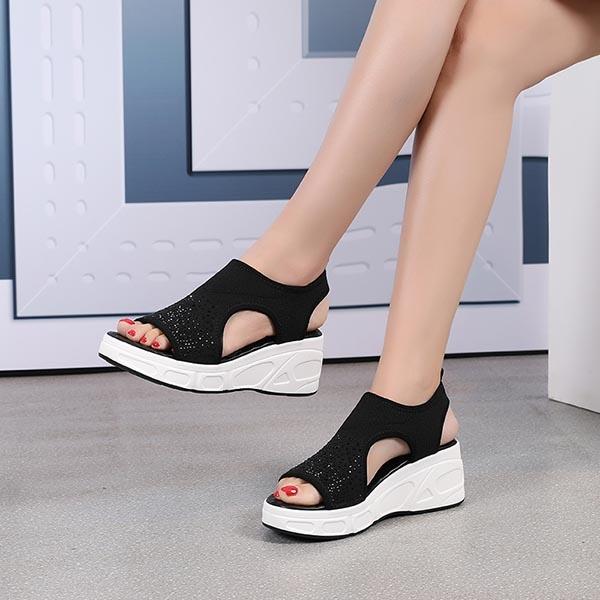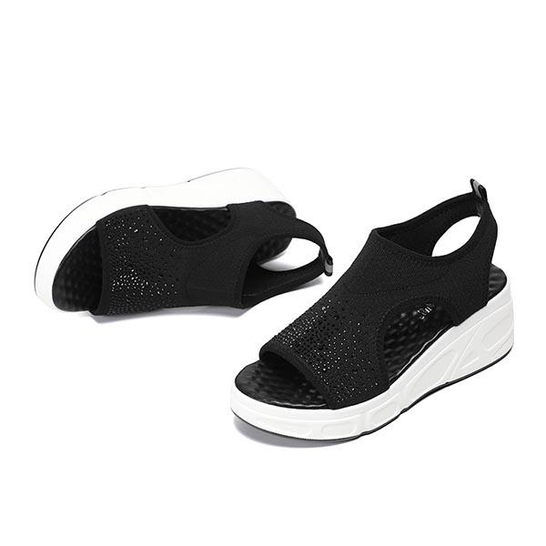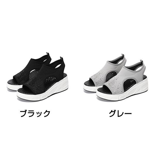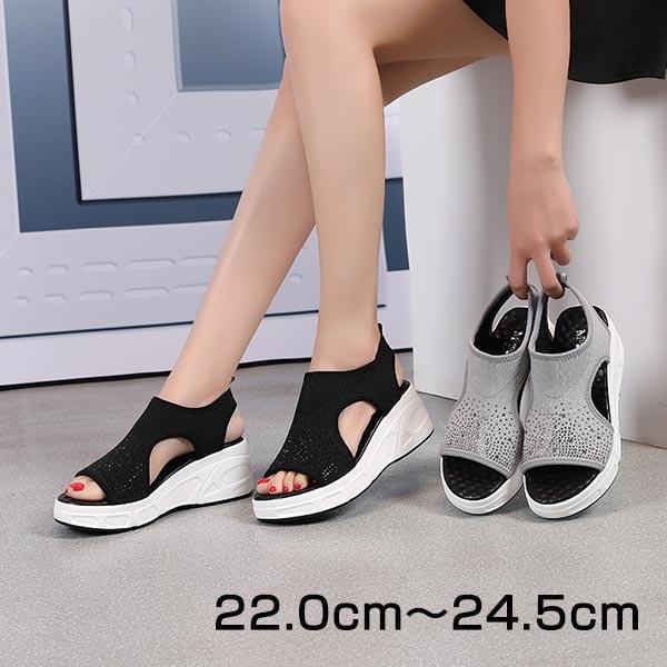 スポーツサンダル 厚底 ウェッジソール スポーティー スポサン スポーツ アウトドア フェス コンフォート レディース オープントゥ 夏靴 キラキラ ストーン飾り 通気 ブラック グレー 黒 di095x1x1s3