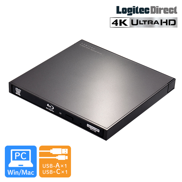 ブルーレイドライブ 外付け ポータブル BD / DVD / CD USB-A USB-Cype-C ケーブル BDドライブ M-Disc ソフト無し ロジテック LBD-LPWAWU3CNDB