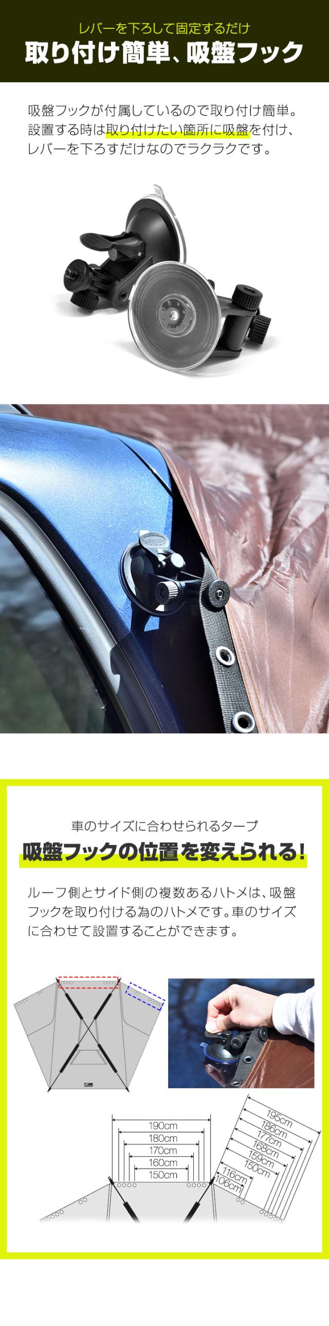 - 1人では立てにくいのですが、使い勝手は、吸盤でなければもっといいかな?ドアもいましたが、アレンジして使います。かなり広いので夏はいいともいます。 車の隙間対策は、獣対策は自分でやりましょう。大きさは、...