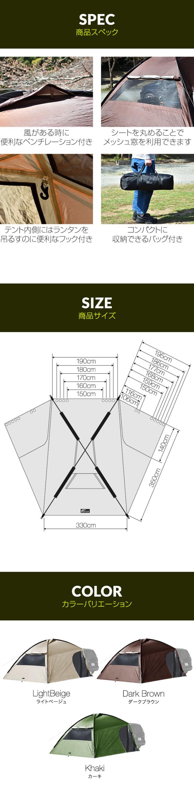 | サイズ: 本体サイズ : (約)330cm×350cm 収納時 : (約)63cm×18cm×18cm |