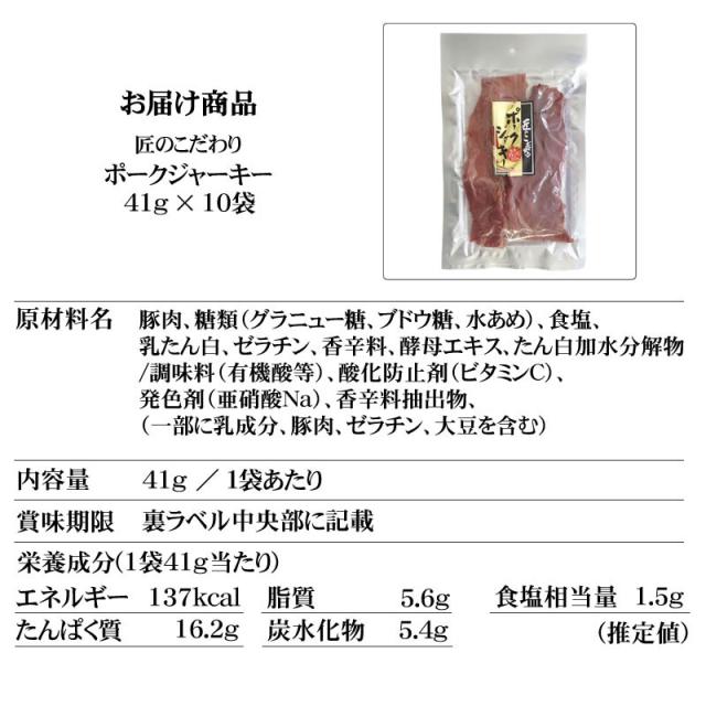 匠のこだわりシリーズ ポークジャーキー41g×10袋 [ポーク41g×10袋] ジャーキー ポーク 豚肉 送料無料 ギフト可 即送