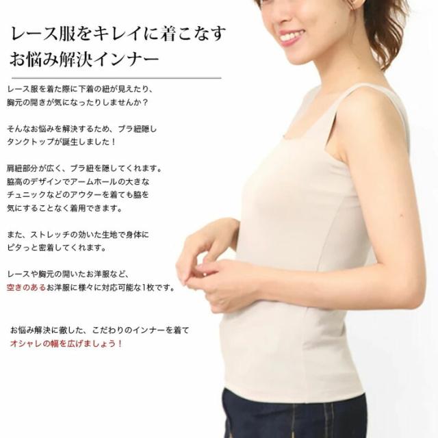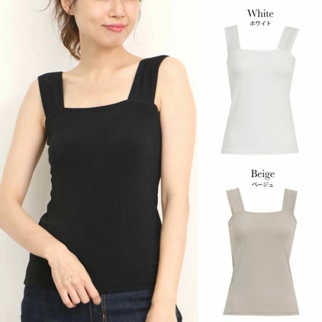 ブラストラップ 隠しインナー SUBROSA 8290rt スクエアネック トップス 夏 レディース ブラ紐 胸元 チラ見え 防止 隠す ブラ紐隠しインナー タンクトップ 袖なし ノースリーブ インナー シャツ インナーシャツ 肌着 無地 静電気防止 白 黒 大きいサイズ 日本製 (04447)