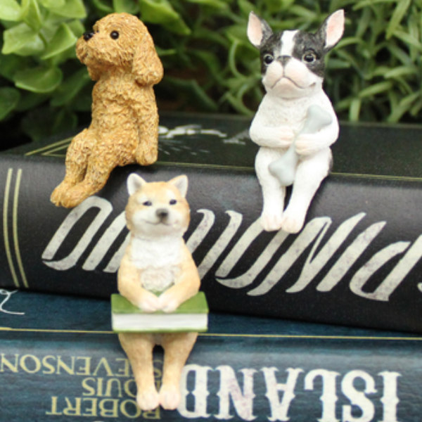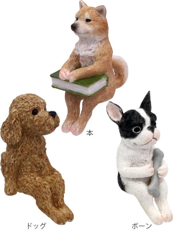 ちょこんと座る動物たちの姿が可愛らしいマスコットシリーズの、犬のオブジェです。ぼんやり佇んでいるようなプードル、骨を持っているフレンチブルドッグ、本を持っている柴犬の三種類です。是非目に付く場所に置いて癒されてください。