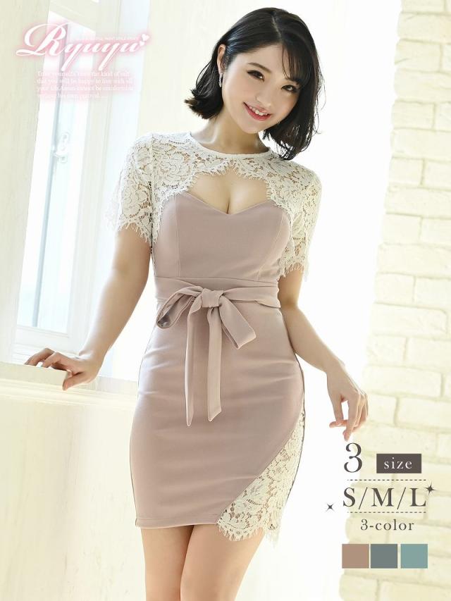 キャバドレス キャバ ドレス キャバクラ ミニドレス パーティードレス Ryuyu カットアウト シアー レース リボン