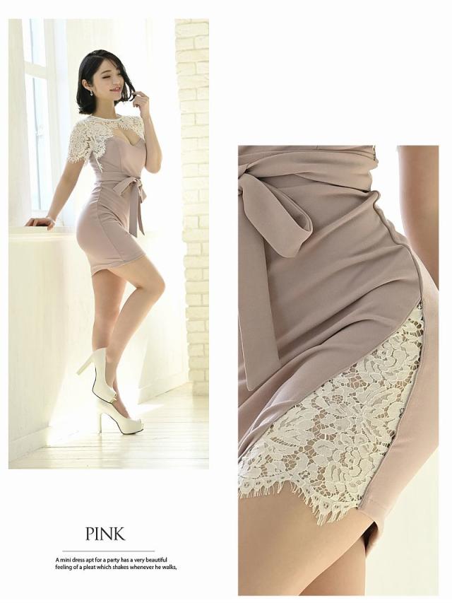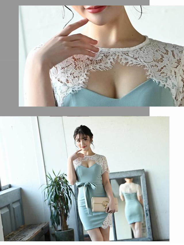 ☆お客様もイチコロ間違いなしな谷間のカットアウトキャバドレスは甘めなレースと春らしいペールカラーが可愛いミニドレス♪