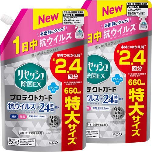 リセッシュ 消臭スプレー 除菌EX プロテクトガード 詰め替え 大サイズ(660ml*2袋セット)[消臭・除菌スプレー]