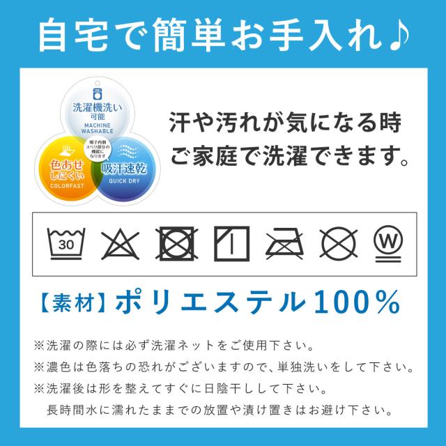 洗濯機洗い対応なのでお手入れも簡単、後頭部にサイズ調節ベルト付きです。