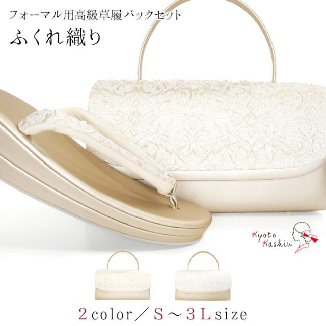 草履バッグセット 留袖 草履 バッグ セット バッグセット 草履バッグ ローブデコルテ ふくれ織り 礼装 黒留袖 S M L LL サイズ フリーサイズ 小さいサイズ 大きいサイズ ゴールド シルバー 金 銀 結婚式 披露宴 入学式 卒業式 お宮参り フォーマル