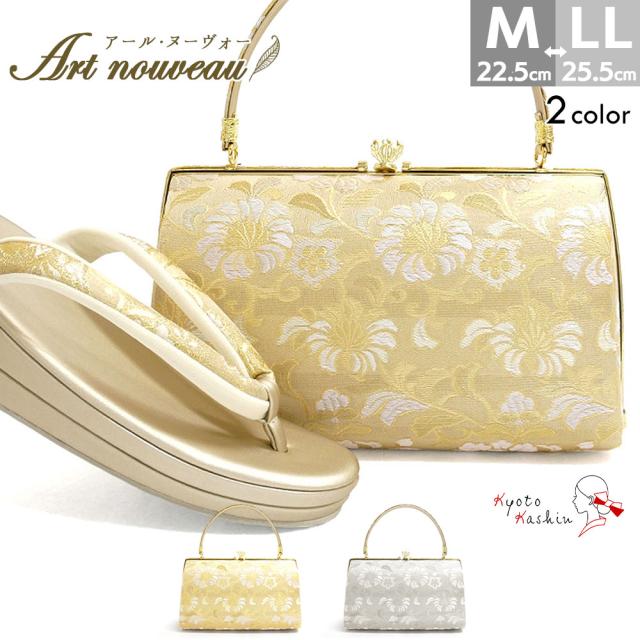 草履バッグセット 留袖 草履 バッグ セット バッグセット 草履バッグ アールヌーヴォー 草花模様 礼装 黒留袖 M L LL サイズ フリーサイズ 小さいサイズ 大きいサイズ ゴールド シルバー 金 銀 結婚式 披露宴 入学式 卒業式 お宮参り フォーマル