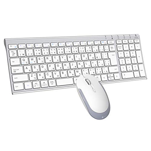iClever キーボードワイヤレスキーボードマウスセット日本語配列 静音 超薄型 テンキー付き 無線2.4G キーボード マウス3段調節可能DPI 充電式 フルサイズ パソコンPC多機能対応Windows対応 Mac対応 シルバーホワイト
