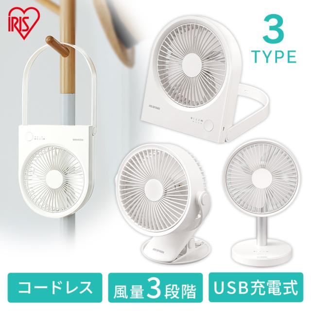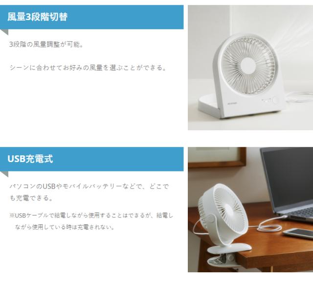 扇風機 卓上 充電式 USB充電 クリップファン ミニ扇風機 モバイルバッテリー 小型 コンパクト 風量3段階 壁掛け 折り畳み コードレス スタンド クリップ オフィス 充電式ファン TFB-01 TFS-01 TFC-01 アイリスオーヤマ *