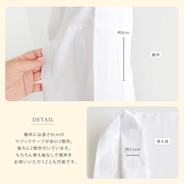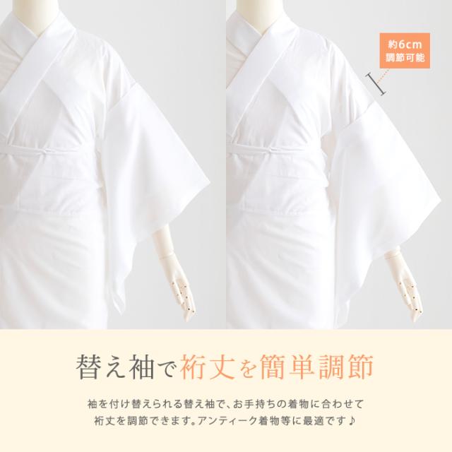 とりかえられる替え袖で裄丈を自由に調整でき、さらに半襟と衣紋抜きが付いています。
