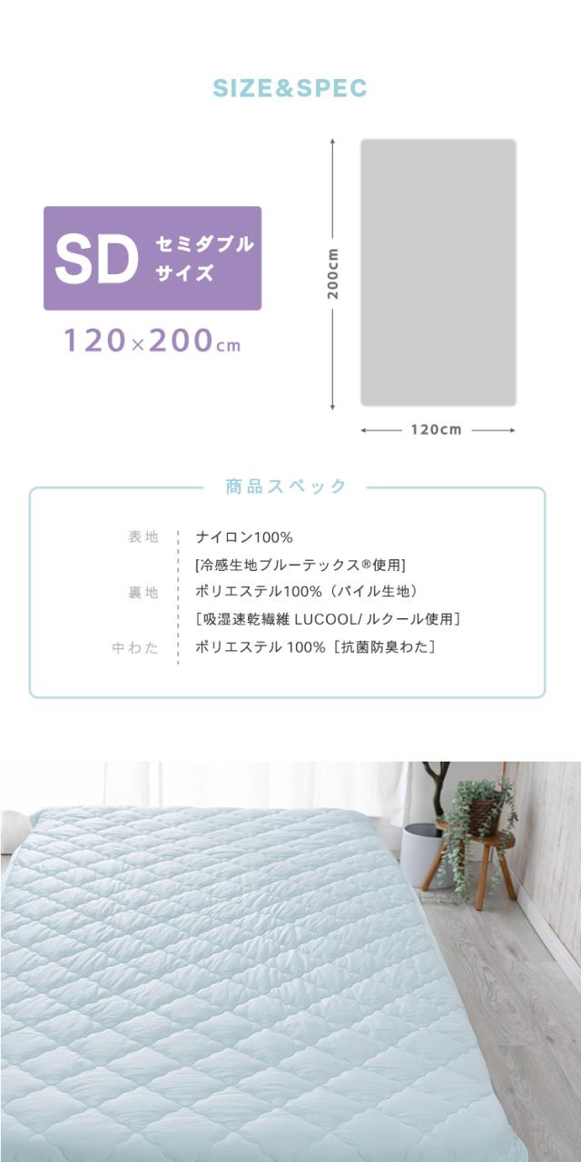 敷きパッド セミダブル 夏用 クール 接触冷感 クール敷きパッド セミダブル LBCSP-12200 リバーシブル 敷きパッド ベッドパット 接触冷感 吸湿速乾 抗菌 防臭 夏用 クール ひんやり さらさら 接触冷感 軽量 丸洗い可能 清潔 快適 送料無料