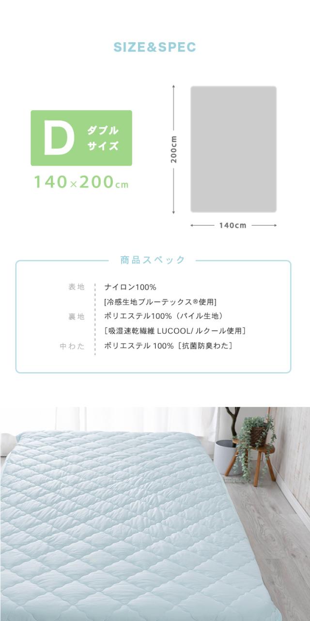 敷きパッド ダブル 夏用 クール 接触冷感 クール敷きパッド ダブル LBCSP-14200 リバーシブル 敷きパッド ベッドパット 接触冷感 吸湿速乾 抗菌 防臭 夏用 クール ひんやり さらさら 接触冷感 軽量 丸洗い可能 清潔 快適 夏用 クール 送料無料