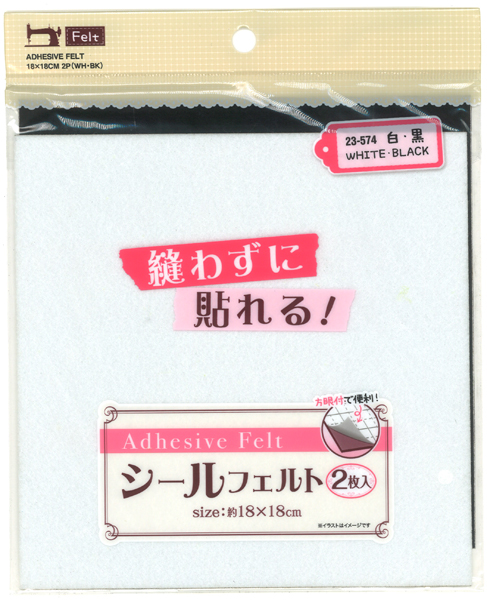 ●品名・貼れるシールフェルト 18X18cm 2P 白 黒
