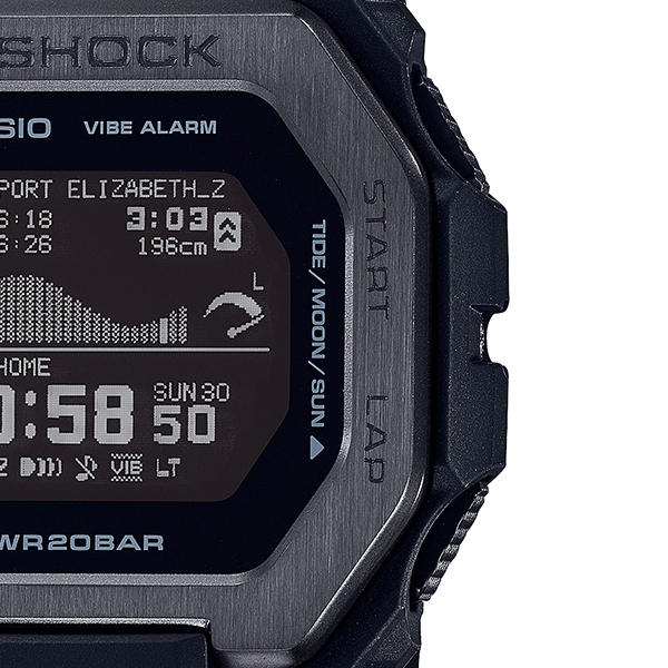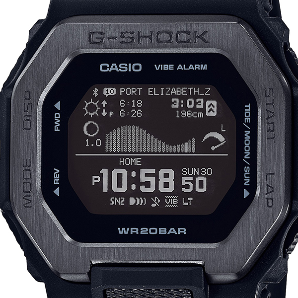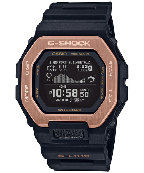 世界のトップサーファーから支持を受けるG-SHOCKのスポーツラインG-LIDE。スマートフォン連携機能を搭載したGBX-100のナイトサーフィンをイメージしたカラーです。