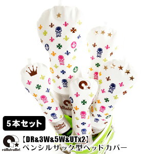 ゴルフ ヘッドカバー 5本セット ベビすか (ドライバー フェアウェイウッド x 2 ユーティリティ x 2) カラフル刺繍 かわいい カワイイ 可愛い おしゃれ お洒落 スカル デザイン ゴールド 星 スター スタッズ お買い得 安い ヘッドカバーセット