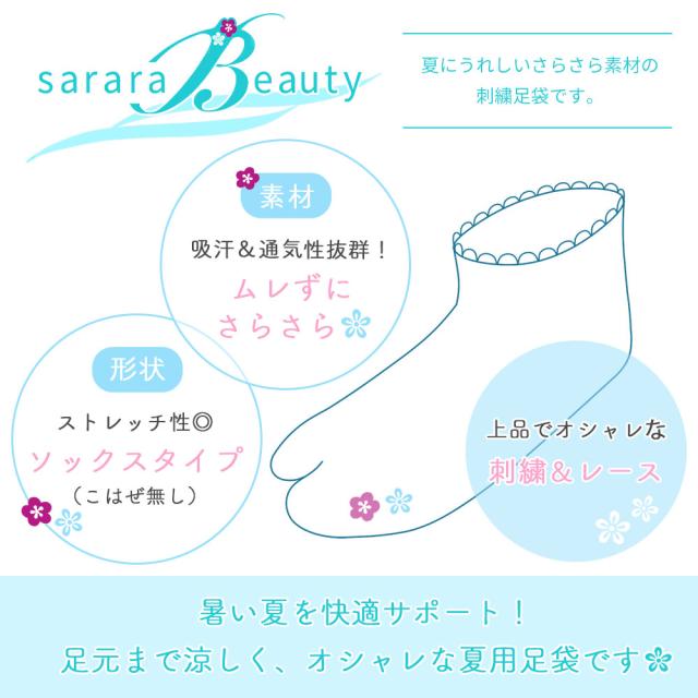 【4足までメール便送料無料】さららビューティー 東レ レース足袋 刺繍足袋 夏 涼しい ストレッチ コハゼなし 白 足袋 高品質 洗える 和装インナー 綿 レース 白 お洒落 浴衣 フリーサイズ フリー