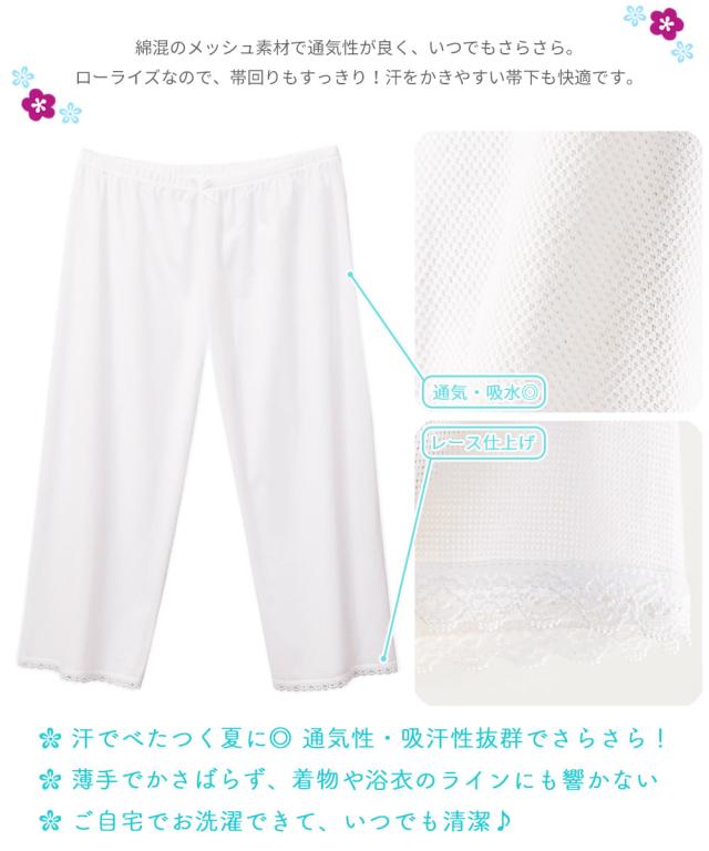 【2枚までメール便送料無料】和装下着 さららビューティー ステテコ 夏用 ストレッチ 着物用インナー 肌着 肌襦袢 高品質 洗える 和装インナー 綿 レース 白 ベージュ 礼装 婚礼 成人式 前撮り 袴 お洒落 浴衣 M L