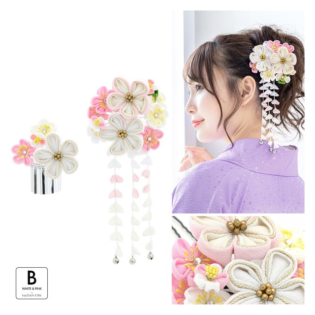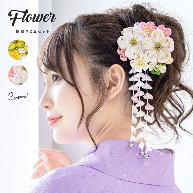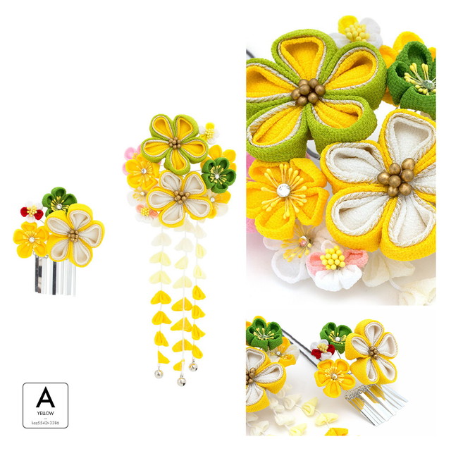 かんざし 和装 髪飾り 成人式 卒業式 袴 振袖 花 つまみ細工 ぶら飾り 2点セット 梅 黄色 白 送料無料