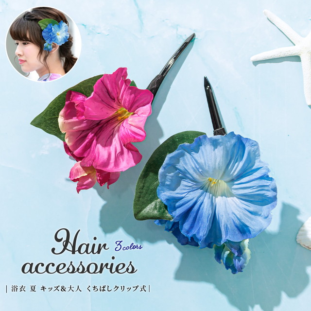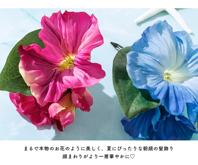 髪飾り 和装 花 浴衣 夏 フラワー コサージュ 朝顔 あさがお ピンクマゼンタ 紫 青 ショートヘア 和装 クリップ 送料無料