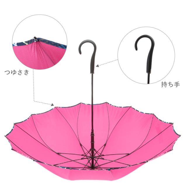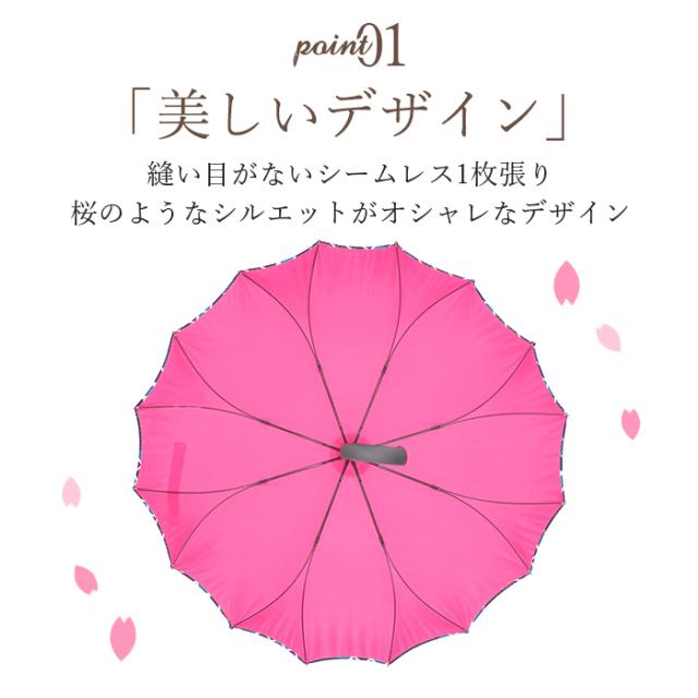 傘 レディース 長傘 耐風 桜骨 通販 おしゃれ ジャンプ サクラ骨 耐風傘 60cm ワンタッチ グラスファイバー 丈夫 縫い目がない シームレス 一枚張り かわいい 花柄 クーカ ドット