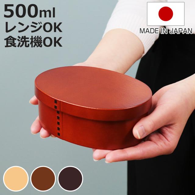 弁当箱 曲げわっぱ 500ml 1段 小 ( お弁当箱 ランチボックス レンジ対応 食洗機対応 女子 大人 一段 弁当 抗菌加工 AG 日本製 レンジOK 食洗機OK 小判 和風 お弁当 ランチベルト付き 仕切り付き 女性 おしゃれ )
