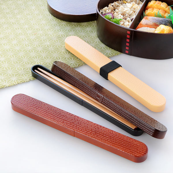 ![]() 木目柄が美しい 箸・箸箱セット | ![]() 簡単に開閉できる スライド式のコンビセット |
