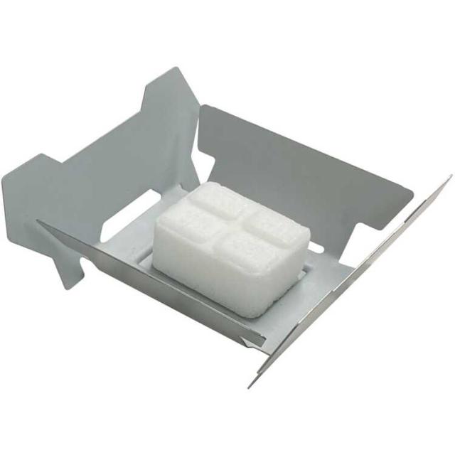使用方法はプレートの4辺を上向きに折り曲げ、固形燃料を中央に配置し点火するだけです。山でガスストーブが故障した場合や船、車などの緊急用具として最適です。個別にパックされた固形燃料ミリタリー14gが3個付属。1個で約12分間燃焼し、500mlの水を約7分30秒で沸かすことができます。使用前は平らでかさばらず軽量。折り曲げて使用し再び平らにするのを1回として約15回使用できます。耐久性のある亜鉛メッキスチール製。
