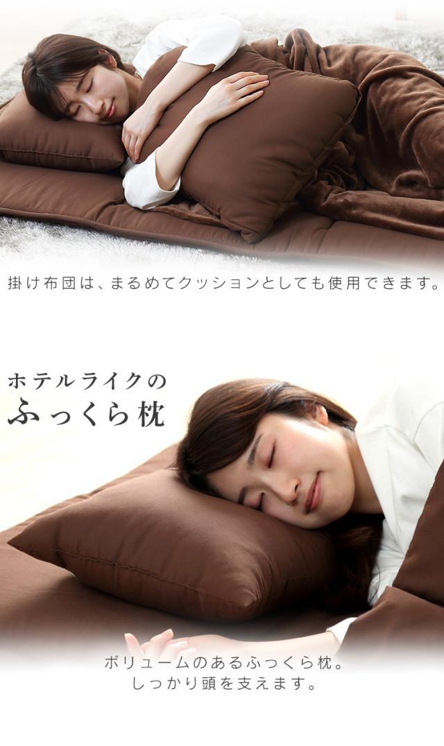 掛け布団、敷きマット、枕、毛布、収納バッグ