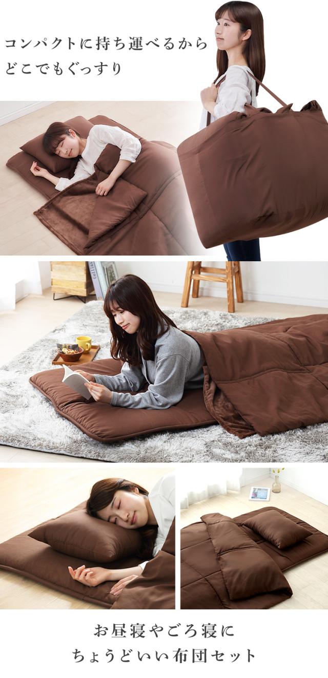 持ち運びや収納に便利なコンパクト布団5点セット。