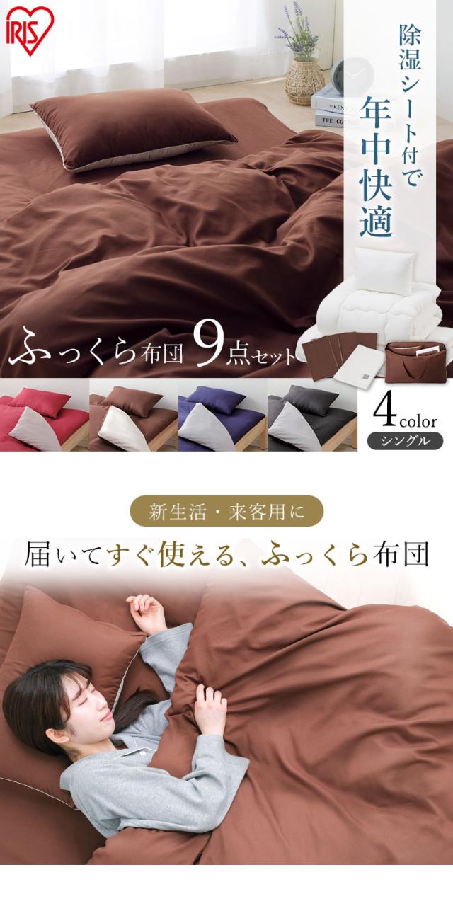 ★クーポンあり★ 布団セット シングル 9点セット 除湿シート付 布団 ふっくら布団 9点セット KFS-F9S シングル 除湿シート付 ブラック 布団 ふとん 布団セット 組布団 ふっくら 新生活 一人暮らし 収納バッグ付き アイリスオーヤマ
