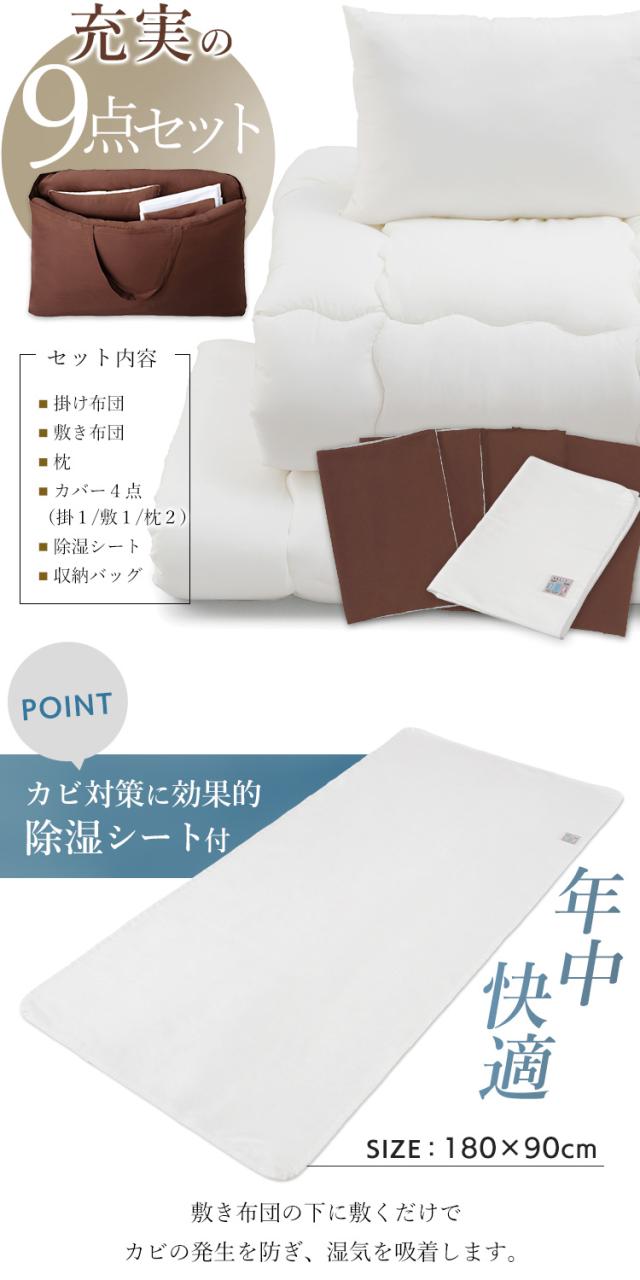 届いてすぐ使える、ふっくら布団9点セット。