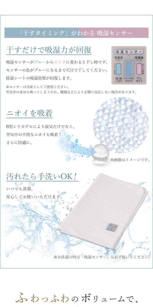 除湿シート:生地/ポリエステル100%、充填物/シリカゲルB型
