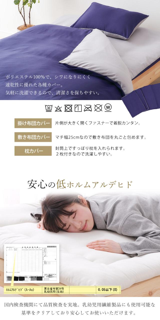 掛け布団カバー、敷き布団カバー、枕カバー、収納バッグ:洗濯可能