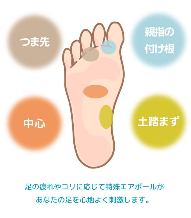 足の疲れやコリに応じて特殊エアボールがあなたの足を心地よく刺激します。