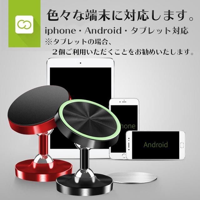 | 商品の説明 | ●夜光タイプなので、夜の暗い車内でも、わかりやすい! ●車内だけでなく、家の中でもご利用できます。 ●キッチンや脱衣所でのご利用もおすすめ! ●ワンタッチで着脱可能なマグネット内蔵式車載ホルダー。 ●取り付けや取り外しが簡単に出来るワンタッチ式タイプとなり置くだけで装着可能です。 ●装着が簡で、磁力が強くとても安定しております。 ●360度回転できるボールを採用、スマホを取り付けたまま、横でも縦でもスマホを自由に操作でき、最適な視覚まで調整可能です。 |