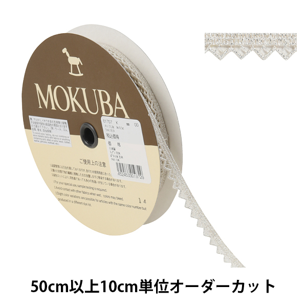 【数量5から】 レースリボンテープ 『メタリックケミカルレース 61707K 00番色』 MOKUBA 木馬