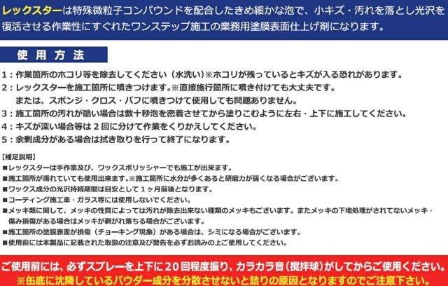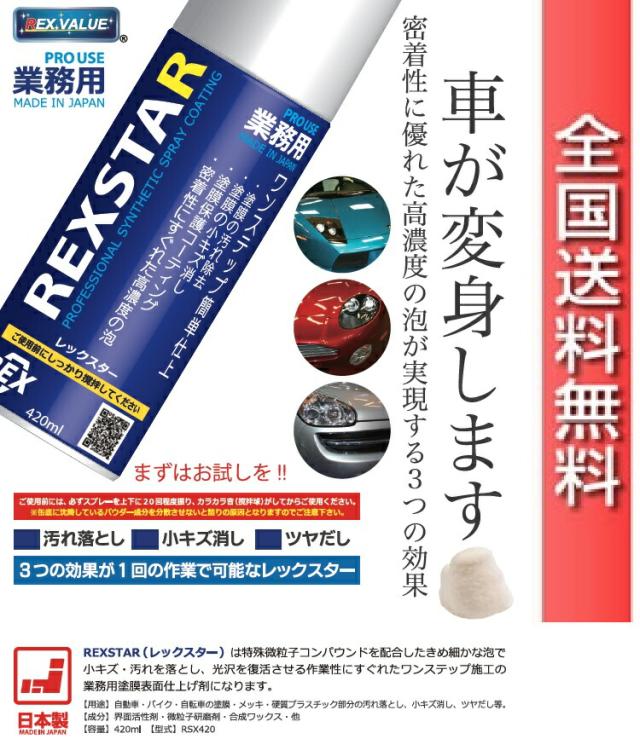 【マイクロファイバーウエスプレゼント中!】レックスター 420ml 自動車汚れ落し、小キズ消し、ツヤ出しの3つの効果のスプレー