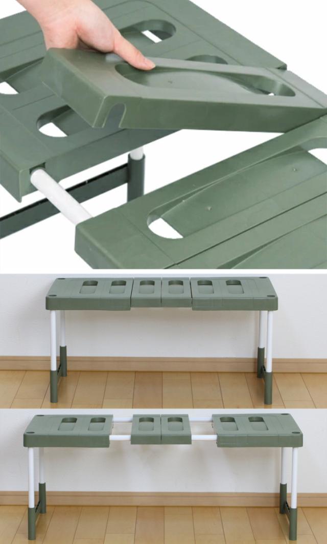 幅は76.5〜92cmの間で伸縮可能で、収納場所に合わせてご希望の幅に調節できるので、スペースの有効活用ができます。