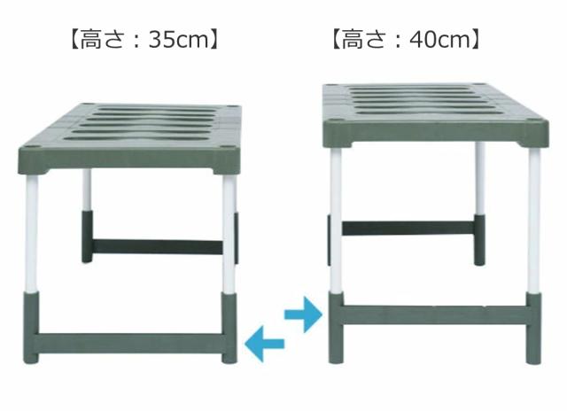 補強脚の差し込み部分を、上下向きを変えて差し込むことで、高さ調節できます。棚下に置く収納物に合わせて高さを「35cm」「40cm」の2段階で調節できます。
