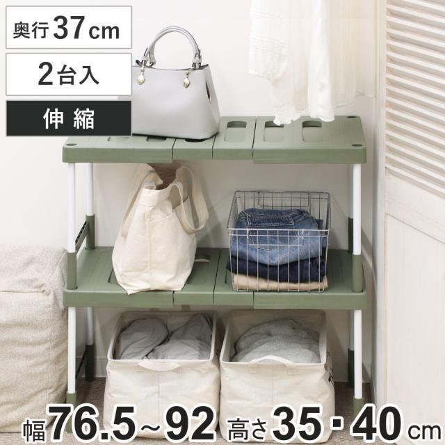 ラック 幅76.5〜92cm×奥行37×高さ35・40cm 2台入り 整理棚 伸縮 クローゼット 押し入れ 収納 ( 押し入れラック 棚 押入れ収納 収納棚 布団台 収納ラック ふとん 日本製 積み重ね 階段下 整理整頓 収納用品 隙間収納 通気性 )