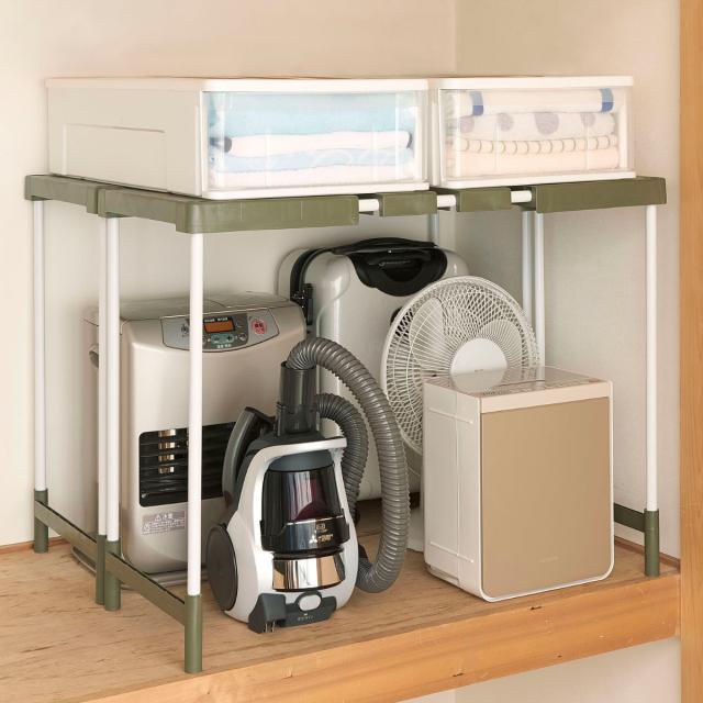 クローゼットや押入れの余っているタテの空間を、上下に分割して無駄なく有効活用できるフリーラックです。幅は伸縮可能で、収納する場所やデッドスペースに合わせてお使いいただけます。