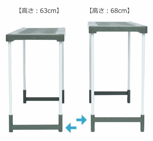 補強脚の差し込み部分を、上下向きを変えて差し込むことで、高さ調節できます。棚下に置く収納物に合わせて高さを「63cm」「68cm」の2段階で調節できます。