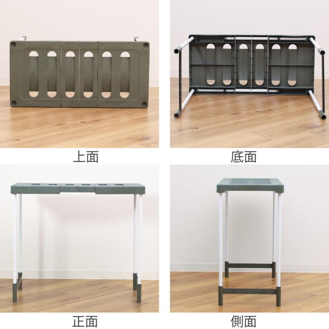 | 材質 | 棚板・補強脚:ポリプロピレン、ポリエチレン パイプ:PPコーティングスチールパイプ |