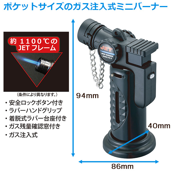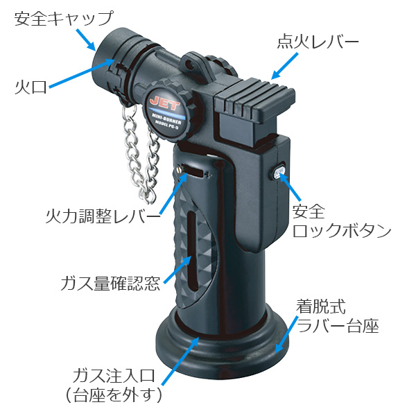ミニバーナージェット PG-5 ブラック‐ガス注入式 安全ロック付き 1100℃ ガスライター キャンプ 着火 仏具 ライター JETフレーム ラバーグリップ アウドドア