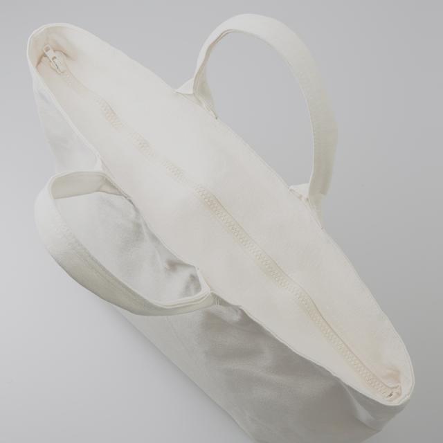 丈夫なキャンバス生地が特徴の大容量ジップトートバッグ。