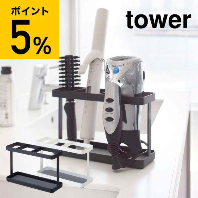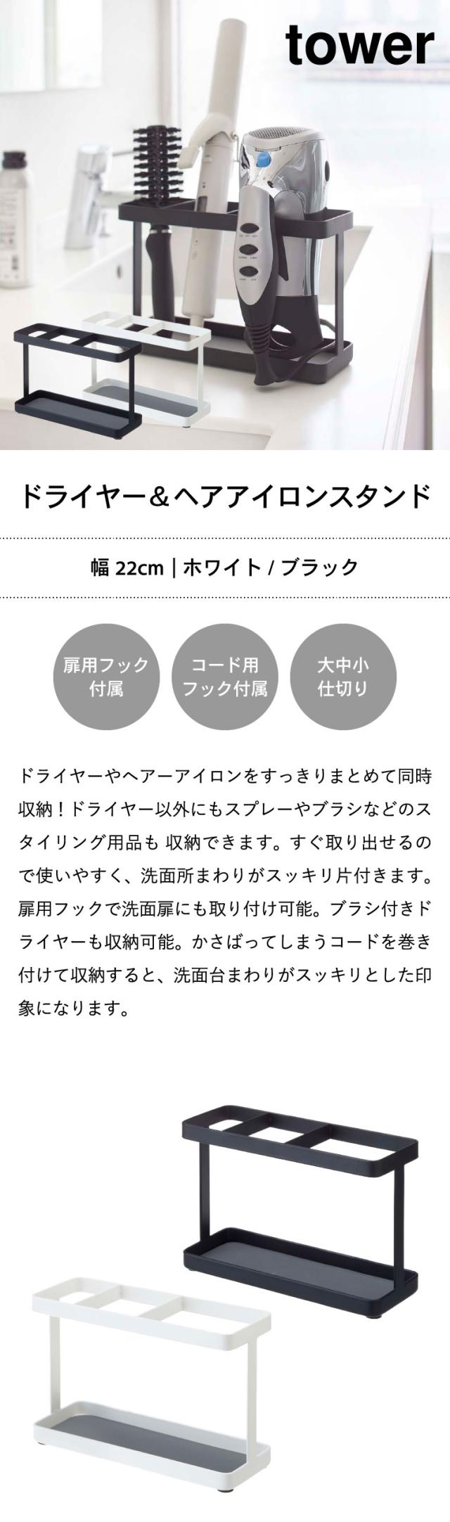 tower 山崎実業 送料無料 ドライヤー&ヘアーアイロンスタンド タワー ホワイト ブラック 収納 ホルダー 洗面 フック スプレー 誕生日プレゼント
