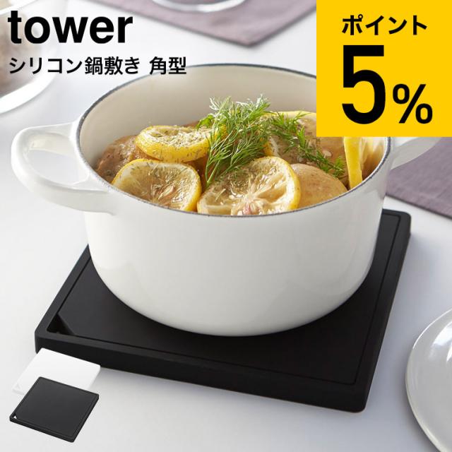 tower 山崎実業 シリコン鍋敷き タワー 角型 ホワイト ブラック 四角 吊り下げ 軽量 厚さ1cm 丸洗い可 誕生日プレゼント