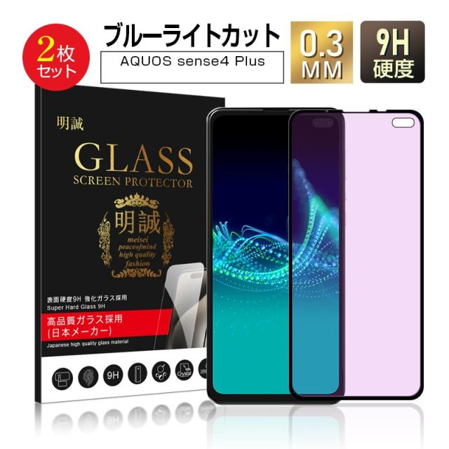 【2枚セット】AQUOS sense4 plus SH-M16 強化ガラスフィルム ブルーライトカット 3D 液晶保護ガラスシート 全面保護 画面保護